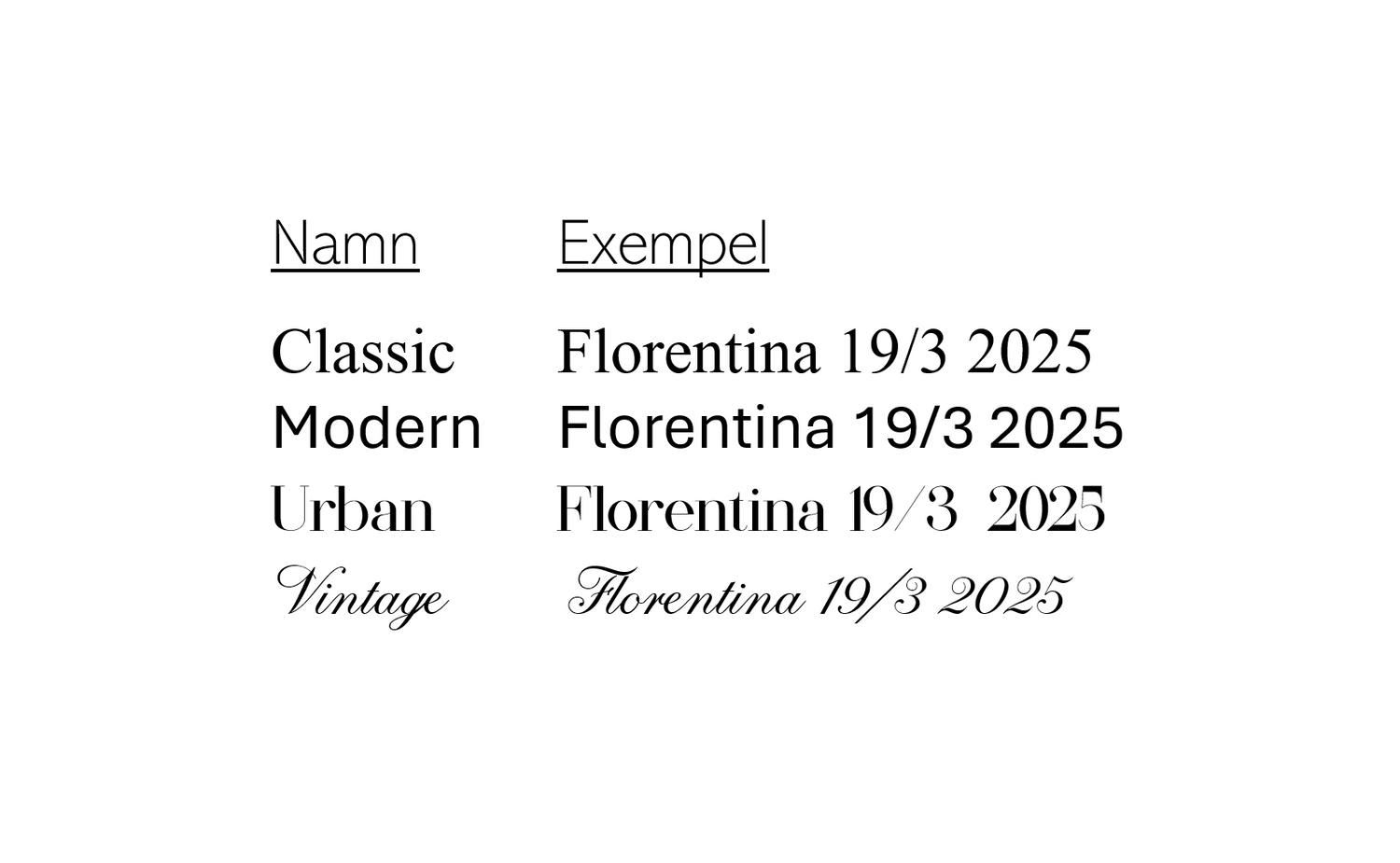 Välj ett unikt motiv eller skriv en personlig text för hand, och vi ser till att det blir en vacker och hållbar gravyr. Kom in till oss i butiken, så berättar vi mer om hur vi kan skapa något riktigt speciellt för dig.