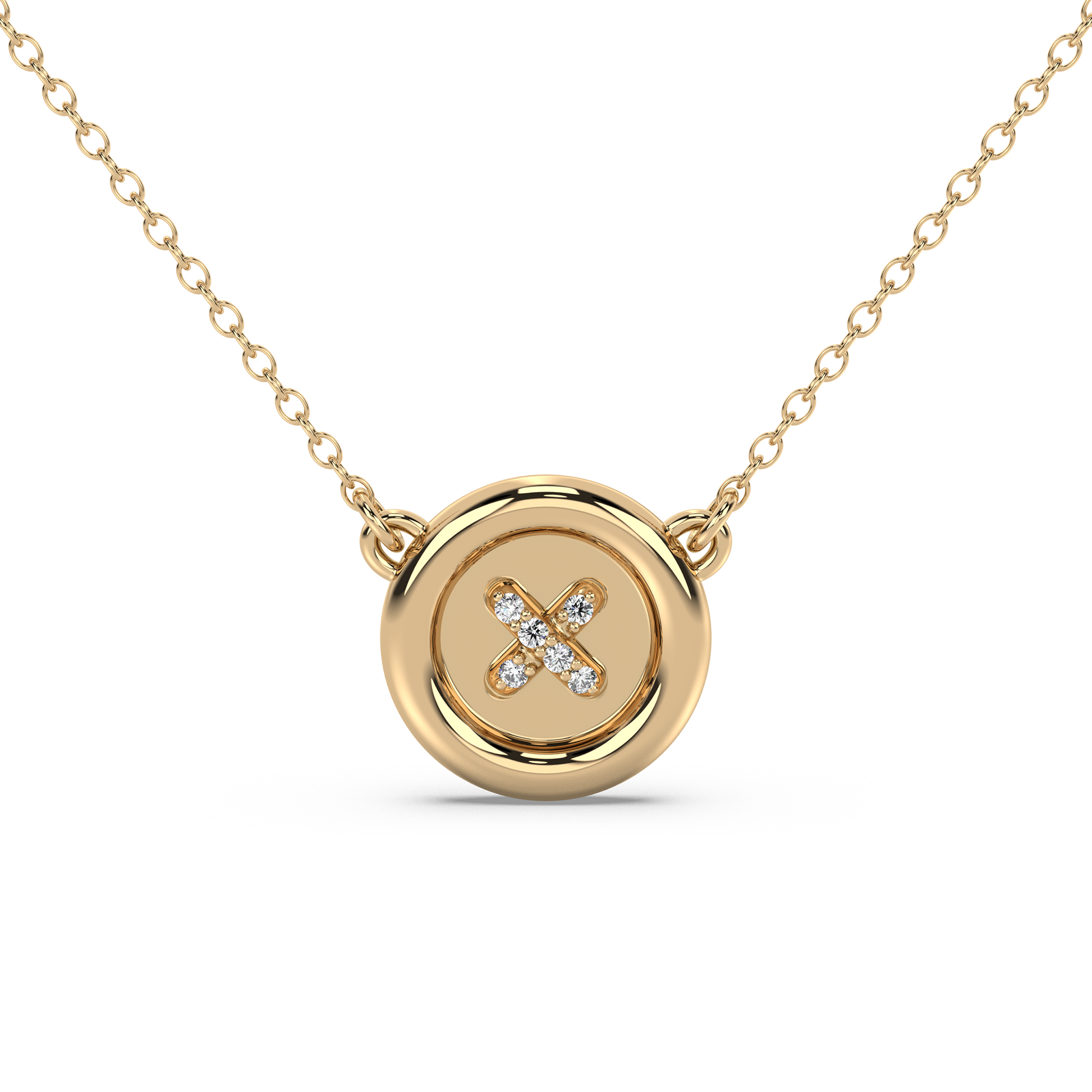 Timeless and gently domed, the Memoir Button diamond necklace in 18K gold captures the essence of quiet elegance. Diamond-set threads trace its contours, shimmering with every movement.