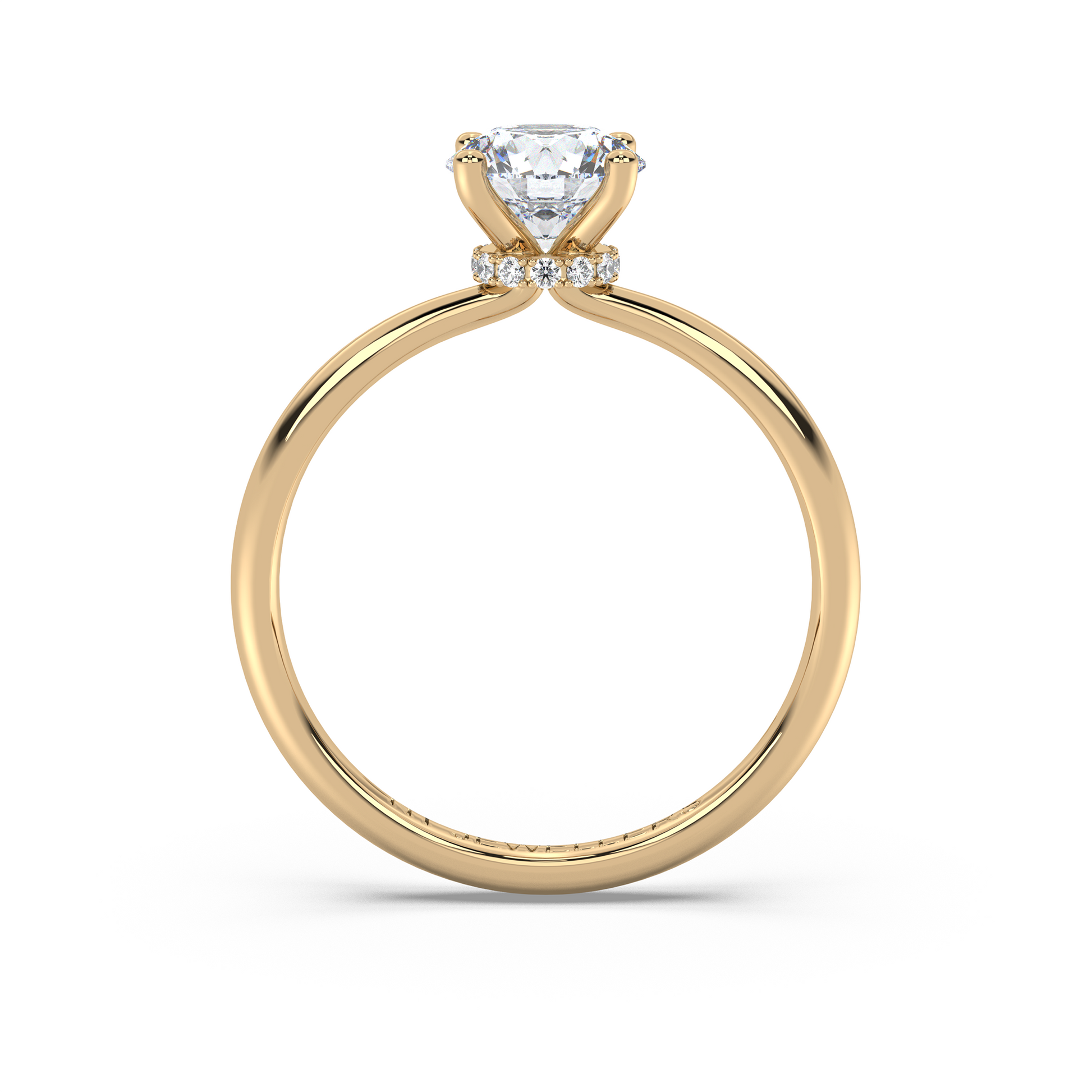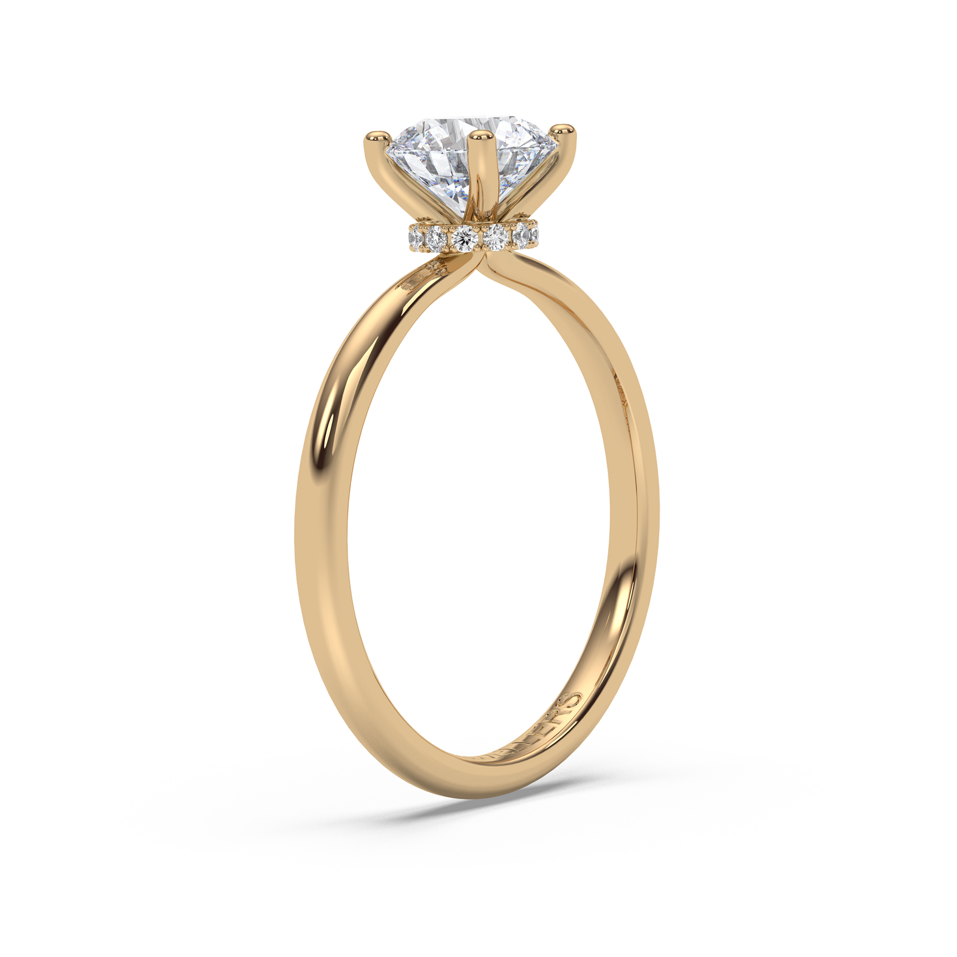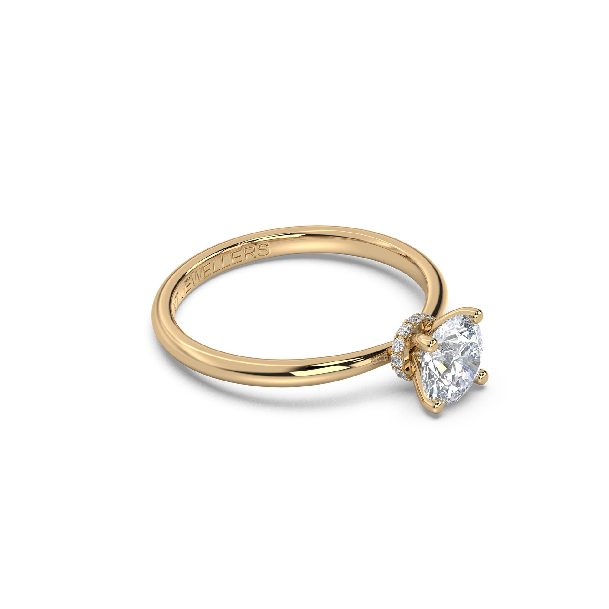 Under stenen vilar en diskret halo, som en dold slöja av ljus, skapad för att förstärka briljansen och låta ringen stråla från varje vinkel. Fyra slanka klor lyfter fram diamanten och låter ljuset dansa över dess fasetter – en subtil påminnelse om kärlekens klarhet och styrka.