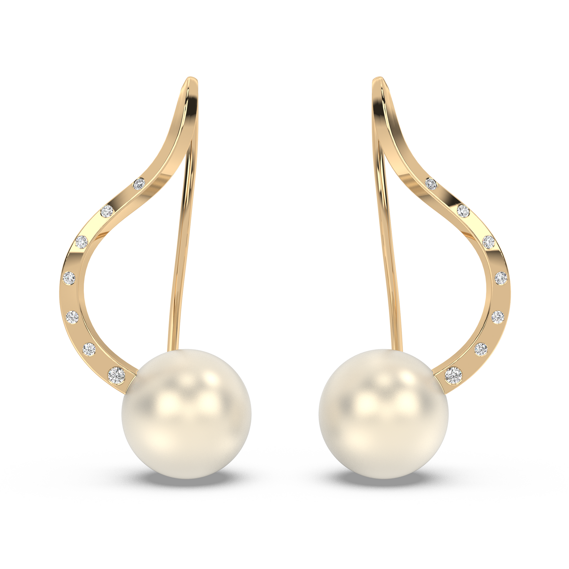 Vågen avslutas med en vacker rund South Sea-pärla, vars naturliga glans ger örhänget en stillsam men fängslande avslutning. Som ett smycke i rörelse berättar det om elegans, subtil lyx och den tidlösa skönheten i naturens former.